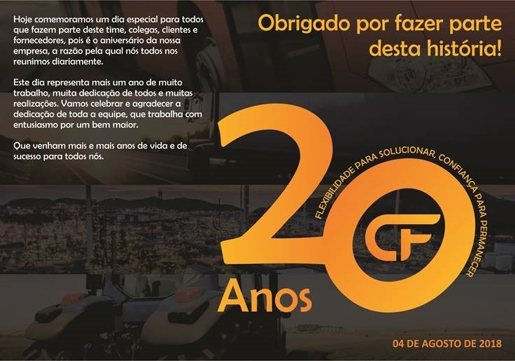 03/08/2018 CIAFLEX completa 20 anos de história Veja imagem comemorativa aos 20 anos de história da CIAFLEX. Tweet galeria de imagens